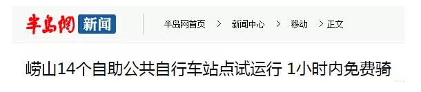 目前單車站點(diǎn)僅限于嶗山區(qū)