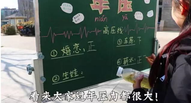 “年壓啊,最大的年壓就是會經(jīng)常被問到,有沒有交男朋友啊,什么時候帶來家看看啊……
