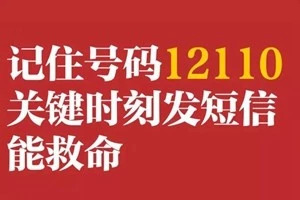 不方便通過電話報警的時候,短信說明地點和情形,發(fā)送到12110+區(qū)號后三位,例如青島:發(fā)送到 12110532 就可以報警了。