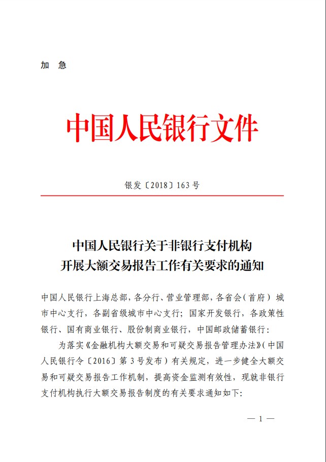 以下為《中國人民銀行關(guān)于非銀行支付機(jī)構(gòu)開展大額交易報(bào)告工作有關(guān)要求的通知》: