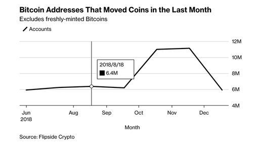 北京時間1月14日,對于比特幣來說,這要么是非常好的消息,要么是非常壞的消息。在這種開創(chuàng)性的加密貨幣上周崩潰之后,彭博社報道稱,隨著最近幾周數(shù)十個比特幣錢包如雨后春筍般涌現(xiàn),加密技術(shù)的一項(xiàng)有希望的發(fā)展可能意味著市場將迎來一波出售(或購買)浪潮。根據(jù)Flipside Crypto提供的數(shù)據(jù),不活躍賬戶數(shù)量大幅下降。
