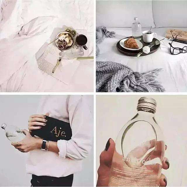 顏值大咖駐扎的Instagram上,喝水這件小事都力求完美。新西蘭一家水廠就以性冷淡風(fēng)的瓶裝水Antipodes走紅社交網(wǎng)絡(luò)。最常見的就是以植物配Antipodes,拍照逼格飆升。雖然看著像生理鹽水,但這美的,讓你一瓶爽掏40元肉也不疼。