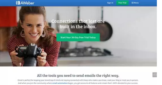 最近,Aweber通過更新主頁設(shè)計(jì),轉(zhuǎn)化率得到了明顯的提升。正如圖中banner文字描述的那樣:你和用戶的連接,一切從收件箱開始。